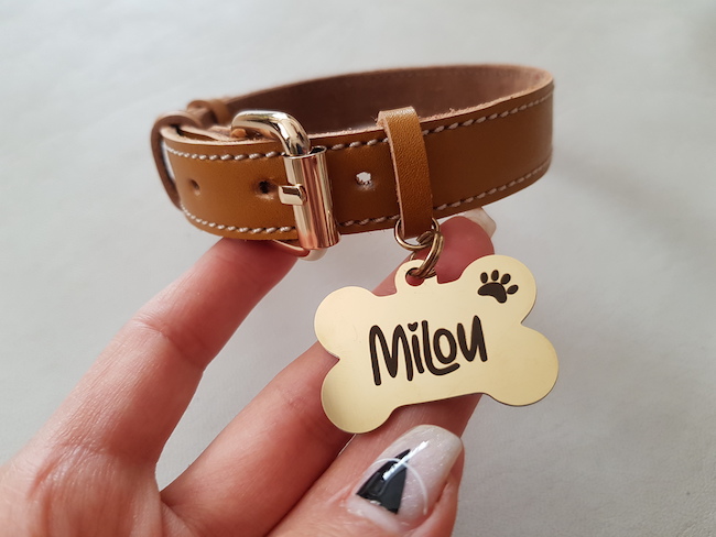 با نام سگ و شماره تلفن صاحب سگ در پشت پلاک